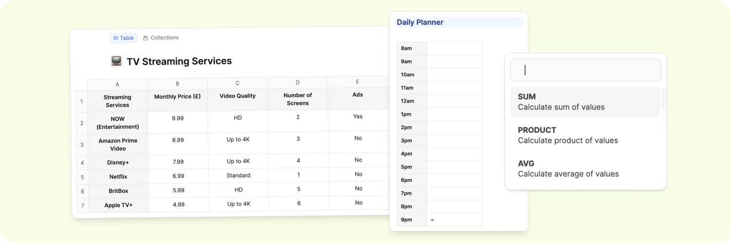 If you are on Capacities Pro or Capacities Believer, you can take your tables to the next level by adding formulas to your cells or columns.